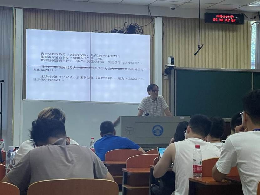 本网讯(通讯员 李忠泽)8月3日上午8:30,山东大学的黄玉顺教授做了题为“论儒学的‘进步’与‘自由’观念——‘生活儒学’与‘进步儒学’再比较”的主题报告。本场讲座由探花系列 副院长李勇教授主持。