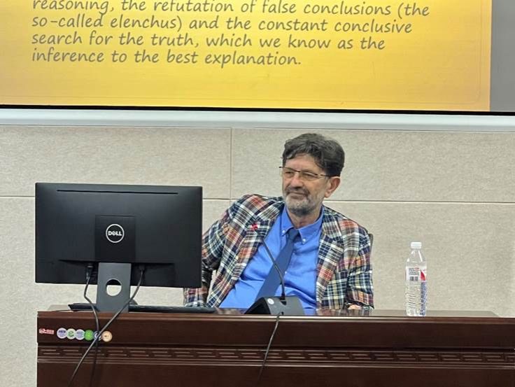本网讯( 通讯员彭文楷) 4月18日晚,德国弗菜堡大学哲学博士、克罗地亚扎达尔大学哲学教授、国际哲学院主席、国际科学哲学院主席、国际黑格尔学会副会长、前克罗地亚科技部副部长尤里·佐夫科(Jure Zovko),应探花系列 陈波教授邀请,在振华楼哲学学院B214作“探花系列 科学技术哲学论坛”第11讲:“有全球哲学吗?”的精彩学术讲座。讲座由陈波教授主持,科学技术哲学教研室副研究员谢凯博及数10位同学参加。