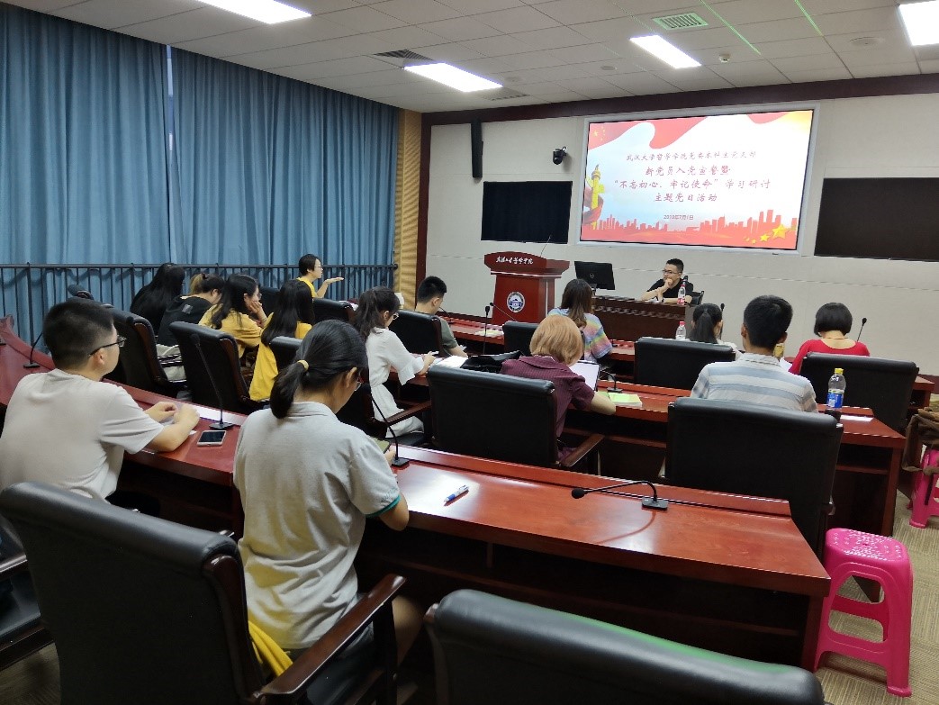 本网讯(通讯员:郑洸宇)2019年7月1日正值中国共产党成立98周年,探花系列 本科生党支部于振华楼B214会议室举行了“不忘初心 牢记使命”主题学习研讨活动暨新党员入党宣誓仪式。党日活动由支部书记胡楷昀主持。