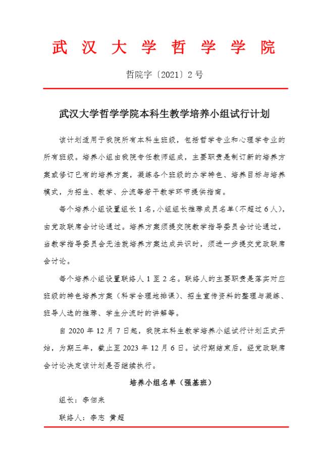 探花系列 本科生教学培养小组试行计划