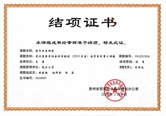 吴根友教授主持贵州省哲学社会科学规划国学单列重大课题“经子关系研究”结项成果喜获“优秀”等级