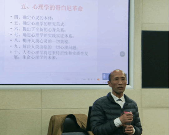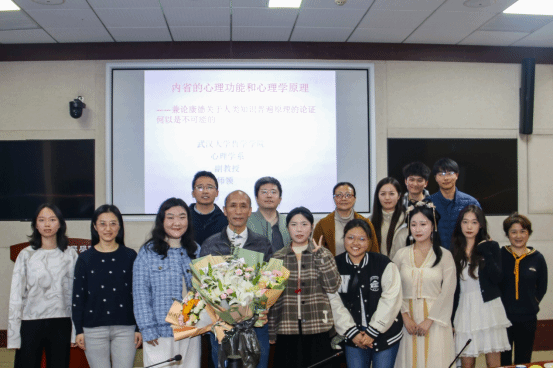 本次午餐会专题讲座是师领老师面向院内的第三次讲座,也是他退休前的告别讲座。心理学专业的师生们为师领老师送上鲜花并合影留念。