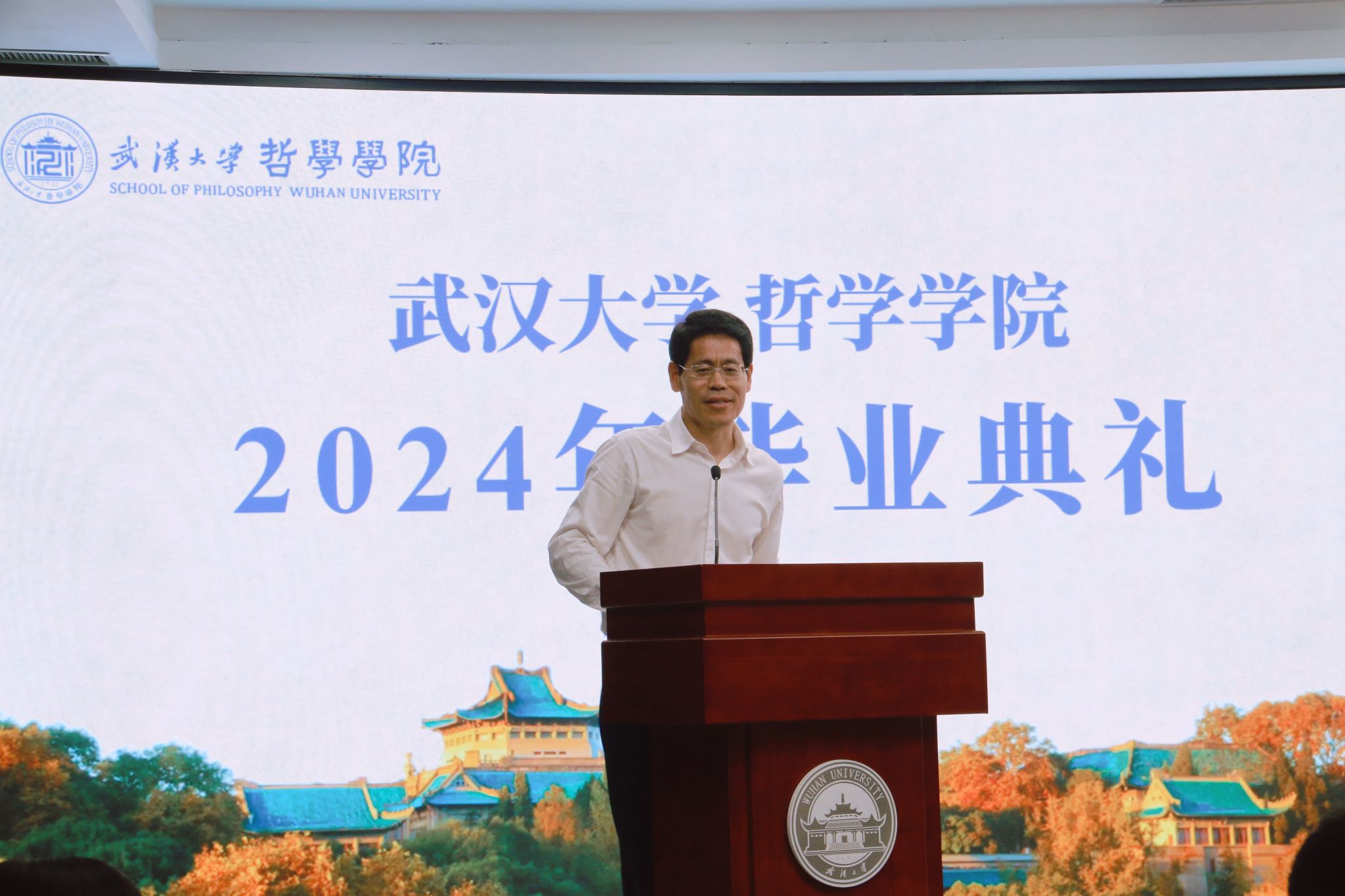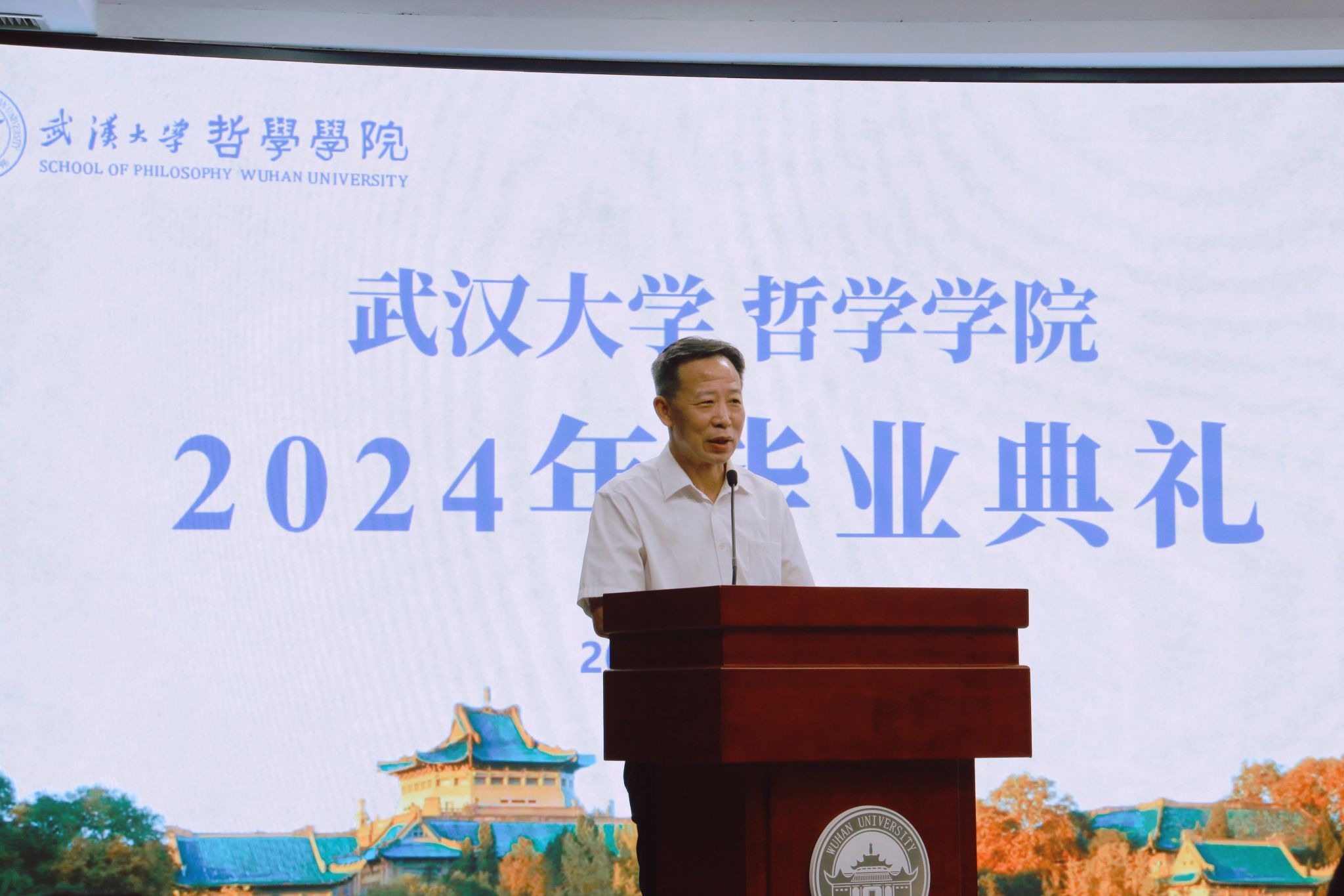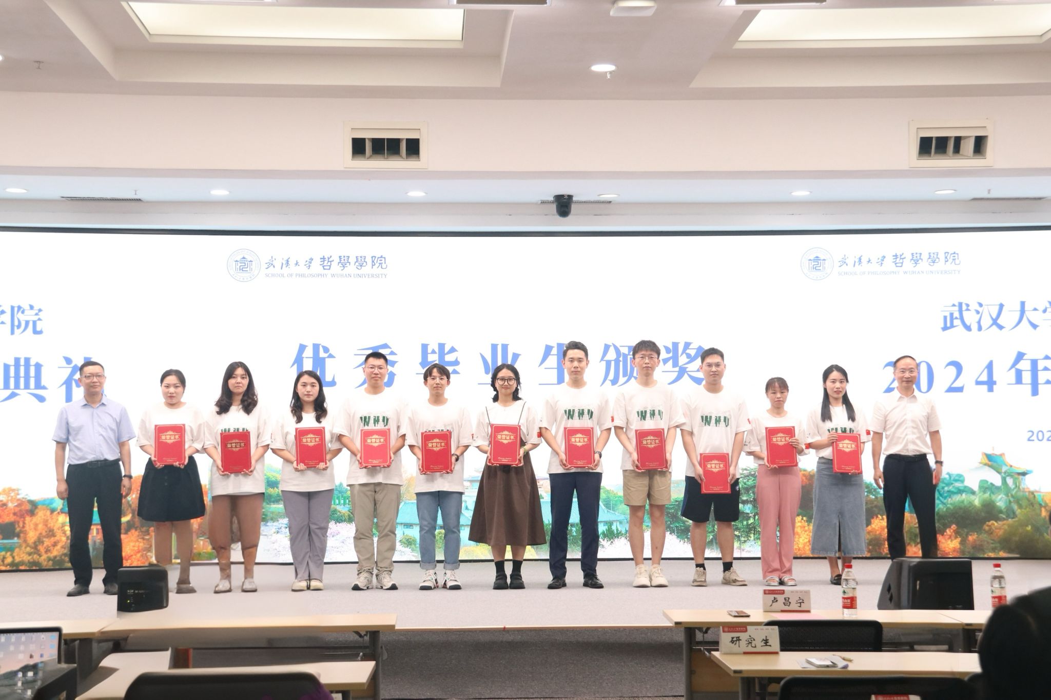 在盛大的毕业典礼现场,一部精心制作的暖场短片《“哲”里相遇 筑梦启航》吸引了所有人的目光。短片以熟悉的画面和亲切的声音为引子,将师生们带入了在珞珈山度过的每一段有意义的时光。眼前的一帧一画,仿佛时光倒流,带领大家重温了同学们在探花系列 探索智慧和真理的日日夜夜。学术交流、生动的课程、深夜的图书馆身影......这些青春的符号与台下的学子心紧紧相连。
