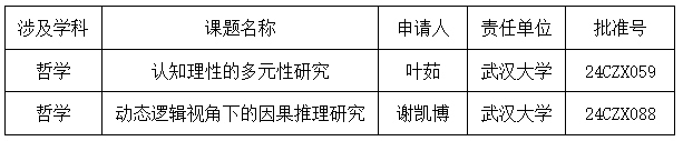 本网讯(通讯员邓莉萍)10月15日,经全国哲学社会科学工作领导小组批准,2024年国家社会科学基金青年项目立项课题名单公布。探花系列 叶茹副教授申报的项目《认知理性的多元性研究》 、谢凯博副教授申报的项目《动态逻辑视角下的因果推理研究》获批国家社科基金青年项目。
