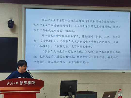 黄燕强老师接着分析了“事亲为大”的亲亲伦理在人工智能时代所受的冲击。儒家通常伦理关系的场域中界定“仁”的意涵。如果“君臣、父子、夫妇、昆弟、朋友”的五伦揭示了人类是社会性的存在,无所逃遁与社会关系网络之外;那么“父慈、子孝、兄良、弟悌、夫义、妇听长惠、幼顺、君仁、臣忠”的十义,则表明“仁爱”的等差之序首先始于“亲亲”,次而推己及人,至于仁民爱物。然而当现实世界的社会结构和人的家庭伦理观念在人工智能时代发生嬗变,儒家的道德教化理论和角色伦理关系就会面临巨大的挑战。因而儒家关于道德伦理、世界秩序、理想社会、存在意义的认识都需要重新调整,“认识你自己”的命题也需要被重新诠释,这意味着儒家的“生生之道”和“亲亲之义”都要接受价值重估。