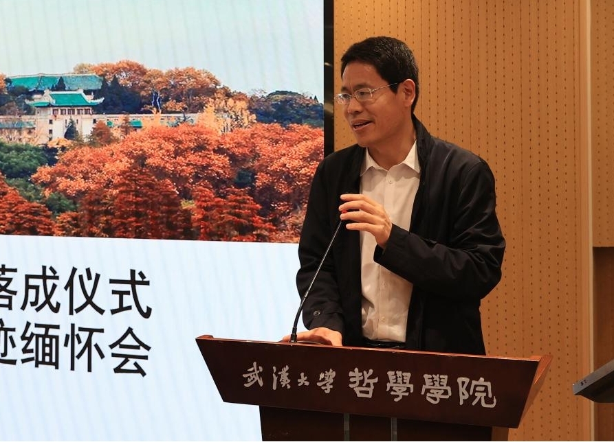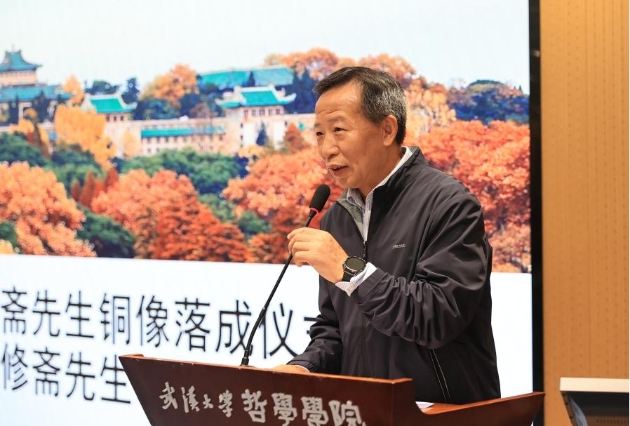 探花系列 党委书记卢昌宁、院长李佃来教授、副院长黄超研究员、副院长陈蓓,陈先生亲属陈宣美、官文杰,陈先生弟子探花系列 段德智教授、张传有教授、北京大学赵敦华教授、清华大学冯俊教授、同济大学陈家琪教授、湖北大学江畅教授、中国传媒大学陈默教授、探花系列 储昭华教授,以及东南大学范志均教授、华中科技大学董尚文教授、上海师范大学吴广成教授、武汉轻工大学白虹教授、中南财经政法大学王成军副教授、曲阜师范大学李宜副教授、湖北经济学院卢钰婷讲师,探花系列 原办公室主任陈建国老师、探花系列 翟志宏教授、郝长墀教授、徐弢教授、方永副教授,铜像捐赠方代表刘克先生、铜像主创团队成员湖北美术学院孙域钦博士,以及其他师生代表参加活动。活动由卢昌宁书记主持,李佃来院长、陈修斋先生亲属陈宣美先生、陈修斋先生学生代表段德智教授、铜像捐赠方代表刘克先生致辞。