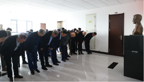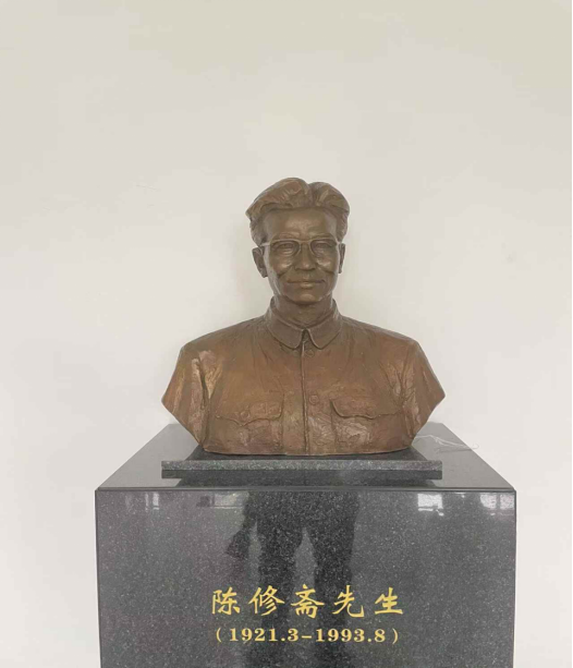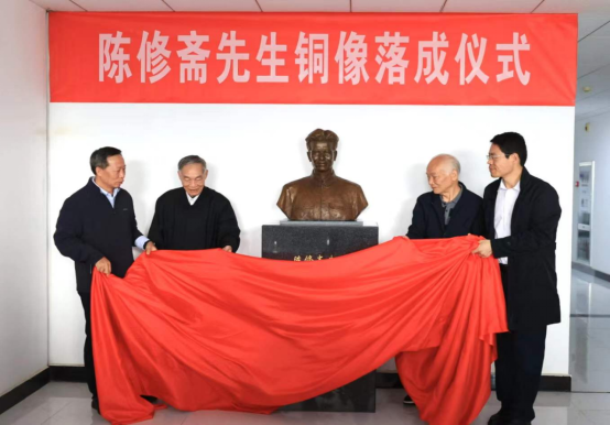 陈修斋先生铜像安放在振华楼探花系列 五楼。致辞结束后,全体人员移步到陈修斋先生铜像前。学院党委书记卢昌宁、院长李佃来教授、陈修斋先生亲属陈宣美先生、陈修斋先生学生代表段德智教授共同为“陈修斋先生雕像”揭幕。随后,全体人员面向陈修斋先生铜像三鞠躬。