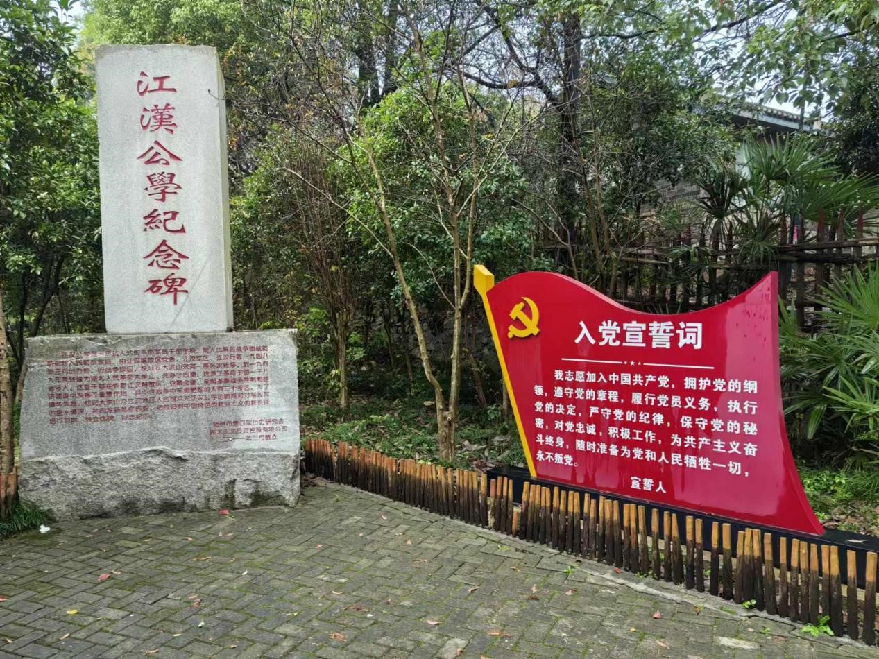 随后,党支部成员一行人前往了位于随县的张体学纪念馆。1965年9月,时任湖北省省长的张体学率领一支30余人的工作队抵达随县洪山区安全大队(现今的凉亭河村)进行蹲点工作。在长达一年多的时间里,张体学深入洪山的每一寸土地,与村民们同吃同住同劳动,为洪山开启了新的建设篇章,因此被誉为“百姓的贴心人”。他不仅身体力行,还高度重视干部教育,严格要求工作队干部以身作则,不占群众一丝一毫的便宜,常言:“干部唯有廉洁自律,方能赢得群众的信赖与支持。”
