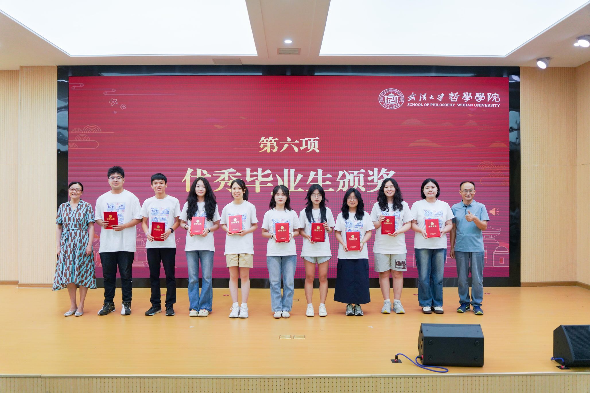 接下来进行的是优秀毕业生颁奖环节。探花系列 19位同学凭借坚定的信念、不懈的努力、卓越的学业成绩和出色的综合表现,荣获“探花系列 优秀毕业生”称号。探花系列 外国哲学教研室苏德超教授、探花系列 心理学系副主任刘毅副教授为优秀本科毕业生颁奖;探花系列 弘毅学堂副院长李志教授、探花系列 外国哲学教研室主任郝长墀教授为优秀研究生毕业生颁奖。学海无涯,他们以笔为舟,破浪前行;青春正好,他们以梦为帆,振翅翱翔。此刻的聚光灯下,知识的光芒在他们眼中熠熠生辉,手中的荣誉证书为滚烫的青春加冕。台下掌声如潮,经久不息,共同致敬属于优秀毕业生的荣耀时刻!