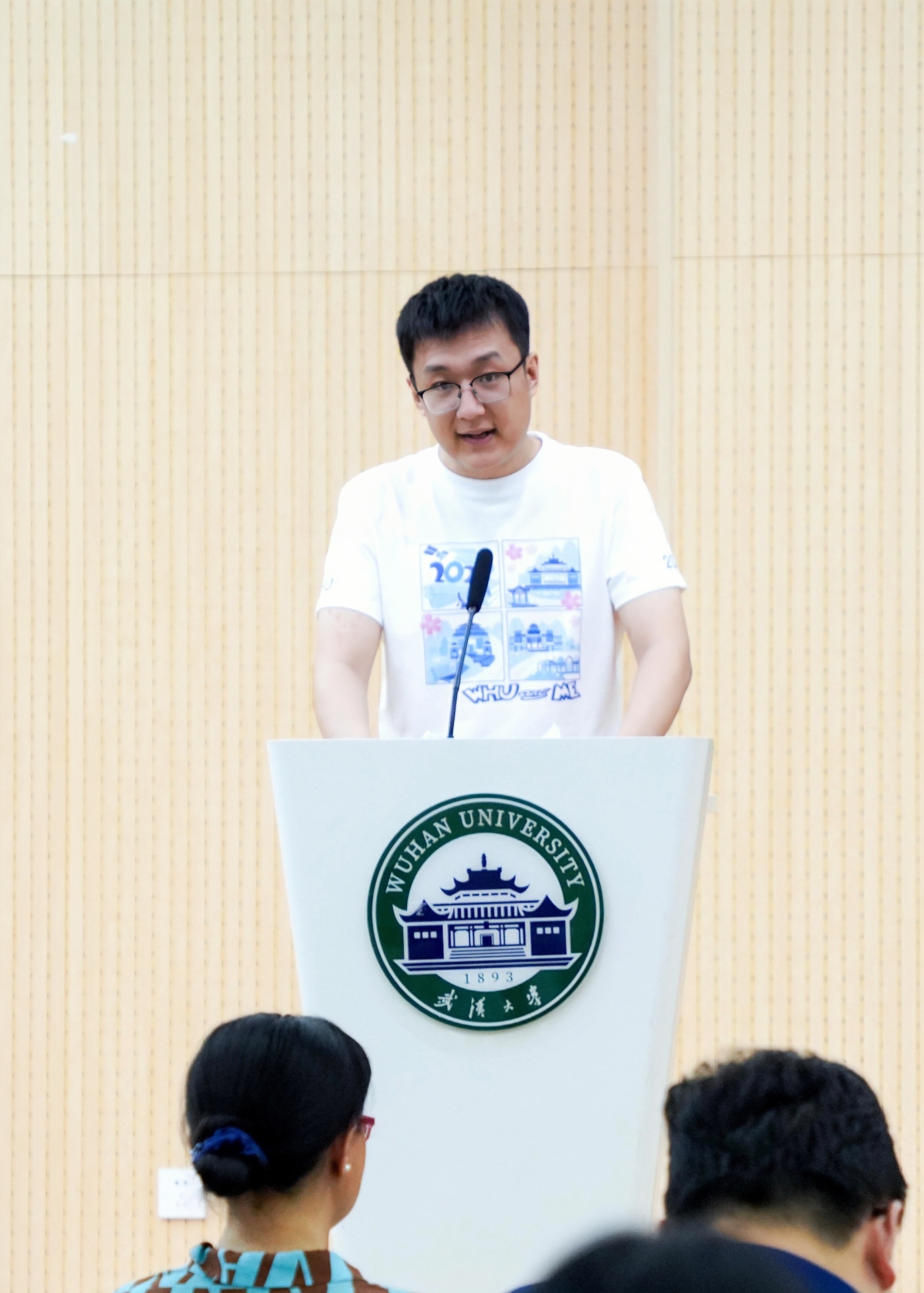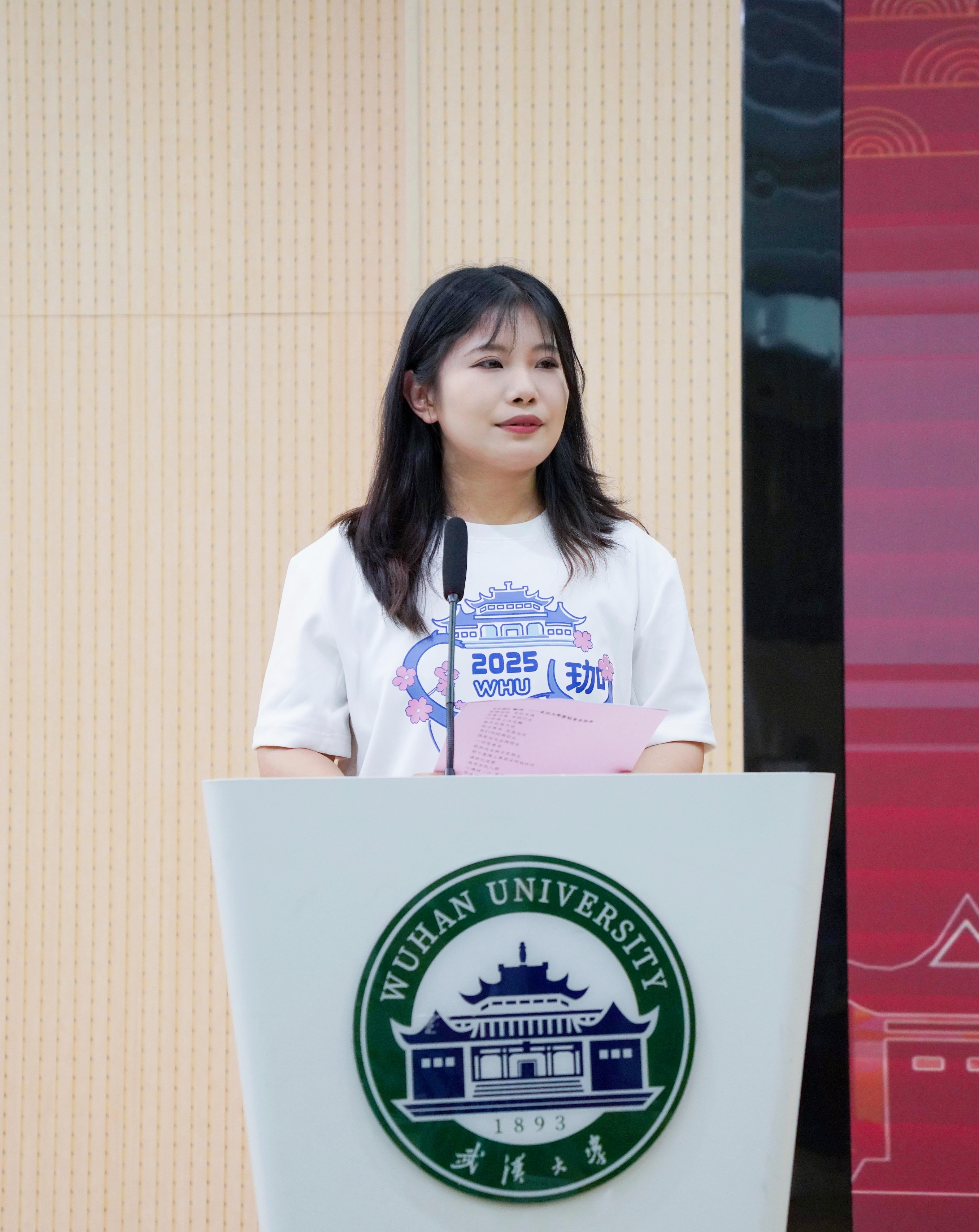 2022级马克思主义哲学专业硕士研究生贾怡昕作为毕业研究生代表发言。她深情回忆了初入哲院时,面对“爱智、求真、向善、致美”的院训所产生的心灵悸动与思想启迪。在珞珈山下的两年里,课堂上的思维碰撞、资料室的潜心钻研、社会实践中的责任担当,共同构成了她充实而丰盈的求学记忆。谈及毕业的选择,她坦言曾在“读博”与“就业”之间反复思考,但最终选择了走进社会,将哲学智慧转化为服务现实的实践。这一抉择正是源于哲学给予她的深厚滋养:从马克思“改变世界”的呐喊,到“实践是认识的目的”的深刻领悟,再到亲眼见证理论落地、推动民生改善的过程,她由衷地体会到哲学所蕴含的扎根现实的力量。最后,她勉励全体毕业生,无论选择何种道路,都要始终保持对世界的好奇与追问,用哲学赋予的智慧与坚韧,书写属于“珞珈哲学人”的荣光。