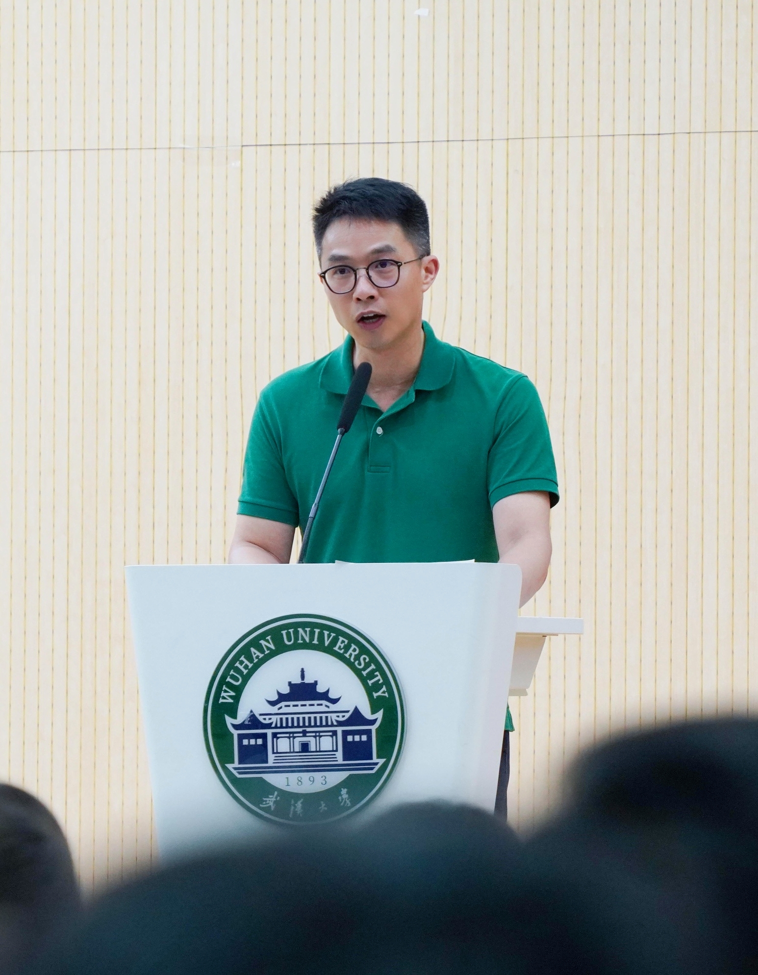 在毕业生代表发言环节中,2021级哲学强基班李腾飞作为本科毕业生代表发言。他深情回顾了自己在珞珈山下度过的四年时光,并聚焦“为什么学哲学”这一核心问题,分享了自己的感悟。他坦言,最初的选择多出于“兴趣”,而四年的学习与思考,则让他对哲学的理解不断深化——它不仅关乎智识的积累,更是对存在价值的反思。他深刻指出,在这个哲学似乎日益“象牙塔化”、与大众产生距离的时代,坚持“因兴趣而学”本身就是对物化现状的一种抗争,是守护自我反思与精神自由的勇气。他动情发问,若能重来,是否愿意一次次选择武大、选择哲学?尼采的那句名言成为了他的答案:“这就是生命吗?好吧!那就再来一次!”掷地有声,令人动容。