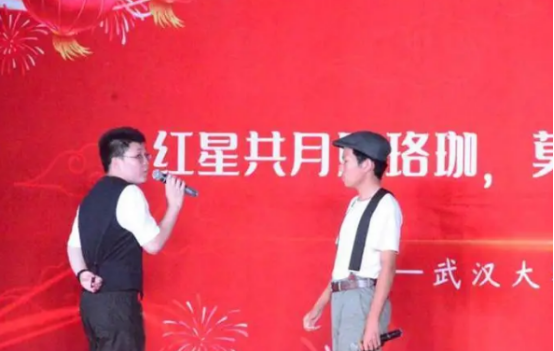 夕阳作为无数诗人讴歌的美景,让所看之人如痴如醉。20级的徐顾佳、吴仕政同学以一首《夕阳醉了》嗨翻全场!让人醉的不只有夕阳,更有他们的歌声。接下来两位同学又带来一曲《水中花》,将观众带入他们的世界。