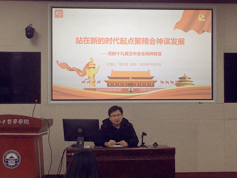 刘义胜副书记主讲了以“站在新的时代起点聚精会神谋发展——党的十九届五中全会精神解读”为主题的党课。他为大家详细介绍了党的十九届五中全会的召开背景、主要成果、起草情况和特色亮点,并围绕《中共中央关于制定国民经济和社会发展第十四个五年规划和二〇三五年远景目标的建议》(以下简称“建议”)进行了解读。刘义胜指出,《建议》明确了未来5年经济社会发展的指导思想、基本原则、目标要求、主要任务和重大举措,描绘了到2035年基本实现社会主义现代化的远景目标,令人鼓舞,催人奋进。他强调,研究生党员要把自己未来5年乃至15年的规划目标与国家的规划目标紧紧联系在一起,德业并进,志存高远,为推动国家高质量发展,早日建成社会主义现代化强国贡献青春力量。