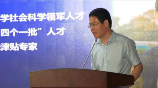 钟年教授代表探花系列 教师上台发言。钟年教授通过讲述蓝翔的故事、武汉疫情期间自己教学的故事和王兵校友的抗疫事迹,探讨了文化在人的身心协调中、在社会精神文明建设中不可或缺的作用。最后,钟老师用十六个字勉励各位毕业生:“志存高远、遇事躬行、专业安身、文化立命。”