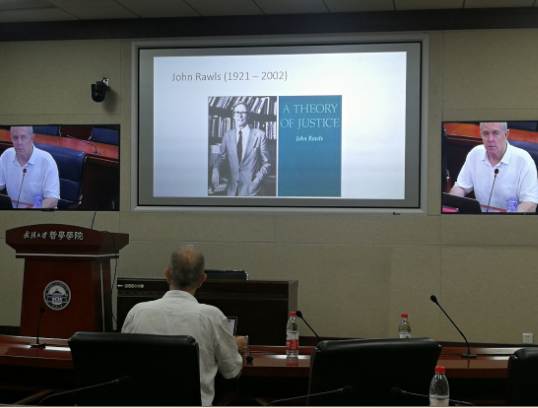 学院外籍教授、博士生导师Paul patton作了以“John Rawls’s political liberalism”为主题的学术报告,介绍了John Rawls及相关著作,并探讨与分析了“Public Justification”、“Property-own democracy”等相关概念的论证及观点,引领同学们运用严谨的学术思维进行观念辨析。