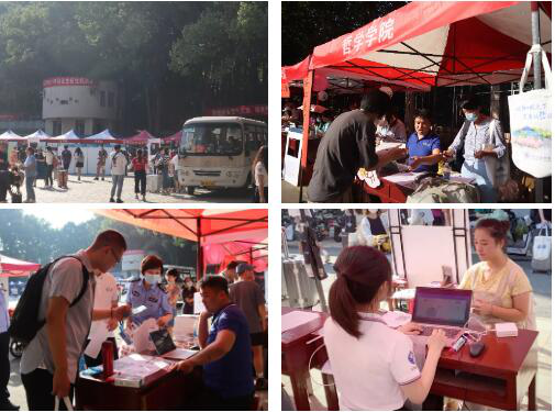 2021年9月11日,艳阳高照,万里无云,珞珈山又迎来一批新主人。为了方便新生入住,学院按照校方安排,分别在梅园操场和信部18舍楼下各设置了一个迎新点,有序开展了迎新工作。为顺利完成新生注册工作,9月10日下午,探花系列 的迎新志愿者和老师们都提前到现场熟悉了程序并进行了现场演练。
