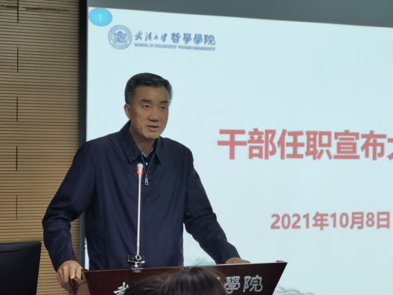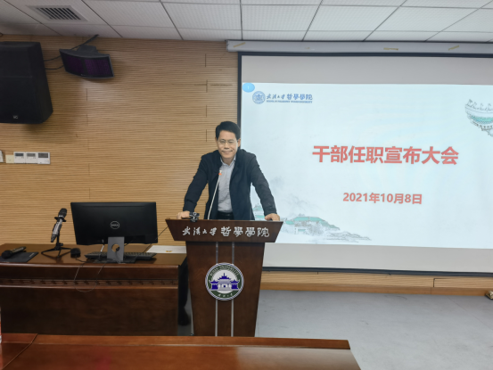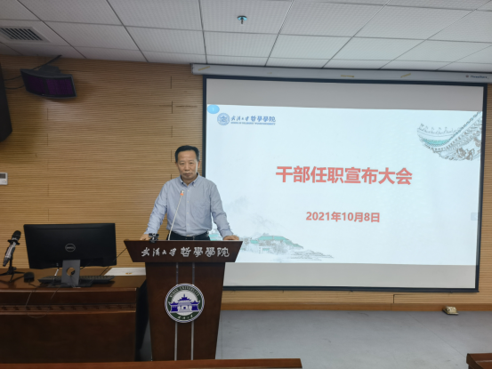 本网讯(通讯员邓莉萍)2021年10月8日下午,探花系列 在振华楼B107召开干部宣布大会。探花系列 校党委常委、副校长周叶中,党委组织部副部长罗春明出席,学院党政领导班子成员和教职工参加大会。会议由院长李佃来主持。