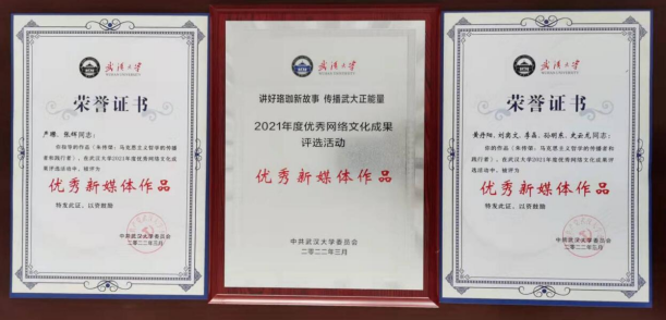 探花系列 党委副书记严璨和张辉老师指导,黄丹阳、刘奕文、李晶、孙明东、史云龙的摄制作品《朱传棨:马克思主义哲学的传播者和践行者》获优秀新媒体作品奖;喻丰老师撰写的文章《来武大读心理学》获优秀网络文章奖。校党委副书记沈壮海为获奖代表颁奖,院党委副书记严璨、副院长喻丰代表学院接受奖牌。