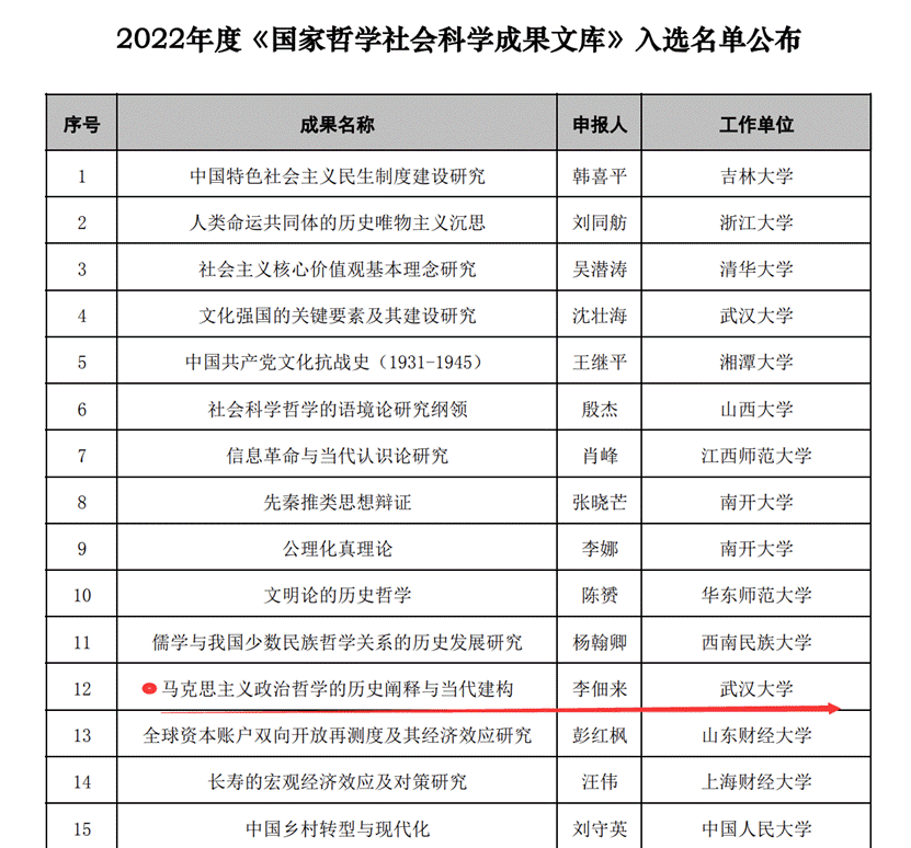 喜报!探花系列 李佃来教授著作《马克思主义政治哲学的历史阐释与当代建构》入选2022年度《国家哲学社会科学成果文库》