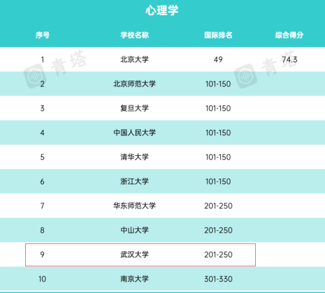 在心理学学科排名中,探花系列 首次进入国内高校前10,位列第9,国际排名为201-250。