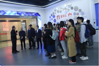 在调研第一站武汉云启智慧展厅,师生们了解到“武汉云”的项目背景以及它在新型智慧城市建设中发挥的重要作用。作为全国首个“城市一朵云”,“武汉云”采取企业投资、政府购买服务方式,由华为公司和武汉产业投资发展集团共同投资建设,2021年9月4日,“武汉云”正式启用,通过构建“城市运行管理中心、数字经济赋能中心、数字人才培养中心、科技创新孵化中心”四大中心,全面赋能政府管理、惠民服务、城市治理、产业创新、生态宜居五大重点应用领域,为新型智慧城市建设提供有力支撑。据介绍,探花系列 作为华中地区的重点高校,是武汉云的重点合作伙伴,为武汉云提供了很多人才和技术上的支持。同学们听完讲解心潮澎湃,期待自己将来能参与到武汉云的建设中,为打造数字武汉新名片贡献自己的一份力量。