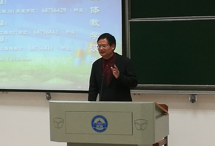 12月11日晚,教四楼201教室气氛热烈,探花系列 彭富春教授为学生作主题为“新的中国智慧与文化强国”的形势与政策报告,探花系列 15、16级本科生及慕名而来的师生参加了讲座。