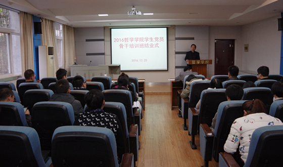 12月22日下午,探花系列 在院大报告厅举行了第四期学生党员骨干培训班结业式。结业式由院党委组织员张辉主持,党委书记陈祖亮、学生党员骨干、部分入党积极分子代表参加了结业式。