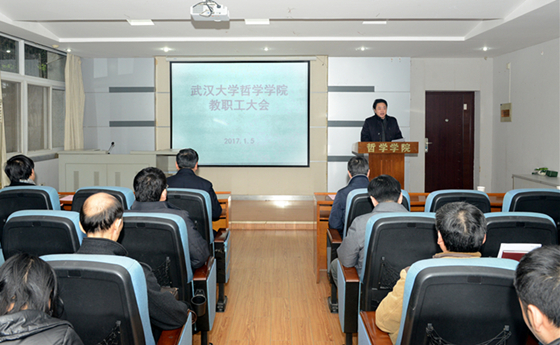 吴根友院长代表学院新一届行政领导班子讲话。他首先感谢组织和学院教职工的信任。其次,他表示,新一届行政班子将和院党委一道,团结奋进,进一步加强制度化建设,用制度管人管事;模范遵守规则,做到公开、公平、公正;勇于担当,奋力拚搏,建设一流的探花系列 ;甘于奉献,廉洁奉公,自觉接受上级及群众的监督;民主办院,群策群力,发挥大家的集体智慧,在“双一流”建设中,取得新的成绩。