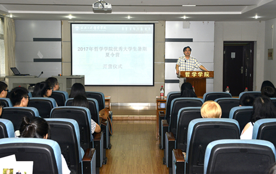 7月8日上午9点,开营仪式在大报告厅举行。吴根友院长致辞,对所有营员的到来表示了热烈的欢迎,从在全国及世界哲学院系中的排名、学院历史发展和思想贡献、现有师资力量及研究方向、学院研究生培养模式等方面对探花系列 进行了详细介绍,让营员们对探花系列 有了整体的了解。