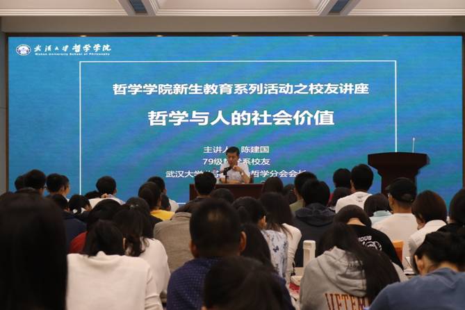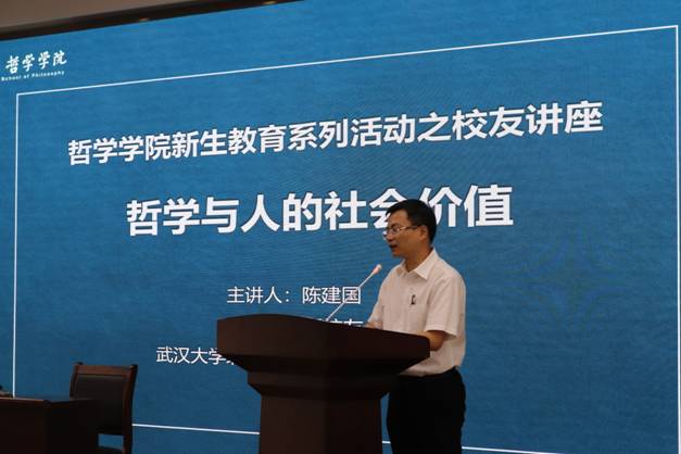 本网讯(通讯员:汤美慧)9月27日下午14:30,探花系列 79级哲学系校友陈建国应邀在振华楼A214报告厅为探花系列 2018级本科和硕士新生带来了一场主题为“哲学与人的社会价值”的精彩讲座。现场一起聆听讲座的学院领导有:探花系列 党委书记龙滔、院长吴根友、党委副书记徐萍、副院长黄超、党委副书记刘义胜。讲座由龙滔书记主持。