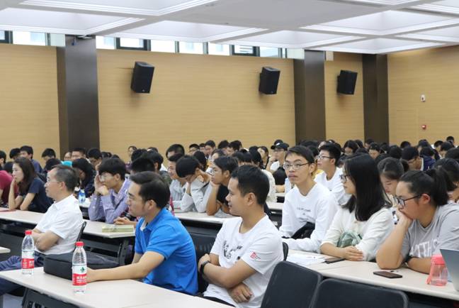 在同学们热烈掌声的回应下,陈建国校友开始讲述自己在武大求学的经历。他向大家介绍了自己的学习生活时间分配,从体育运动、学生会及社团活动、志愿服务到学习方法等几个方面分享了自己的经验与体会,为新生同学的大学生活提供了切实可行的指导和帮助。