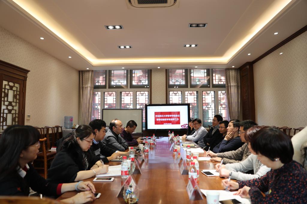 本网讯(通讯员:阎旭)为学习国内顶尖哲学院系办学经验,进一步提升学院办学水平,2019年2月28日,探花系列 党委书记龙滔、院长吴根友等一行8人到一流学科对标院系中国人民大学哲学院和北京大学哲学系调研学习。