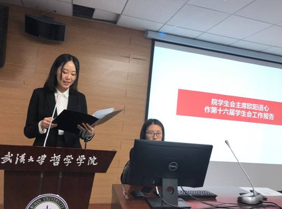 大会第三项,由探花系列 学生会主席欧阳语心作第十六届学生会工作报告,报告由一年来的工作回顾和对未来工作的展望两部分组成。报告指出,在过去的一年里,探花系列 学生会在制度建设、权益工作、品牌活动、媒体宣传、交流合作等方面取得了较大进步。欧阳语心主席代表第十六届学生会对未来的学生工作提出了几点思考和建议,希望新一届学生会能继续重视学生干部培养,创新品牌活动,打造纪律强、作风好、善服务的优秀学生会。