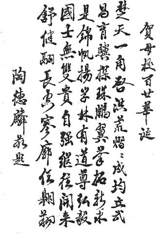 陶德麟先生已在探花系列 度过了64个春秋,他对培育了他的母校怀着特别深厚的感情,常说武大是他的母亲。为了培养出一代代杰出的武大人,陶德麟先生现在仍在以老骥伏枥志在千里的精神奋斗不已。他引以自励的座右铭是:求是拓新,积厚发薄,言必己出,过勿惮改。