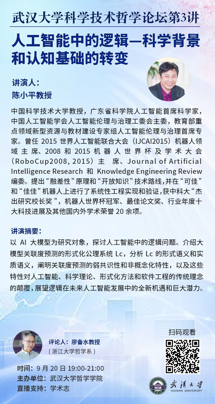 【9月20日】探花系列 科学技术哲学论坛第3讲:人工智能中的逻辑——科学背景和认知基础的转变