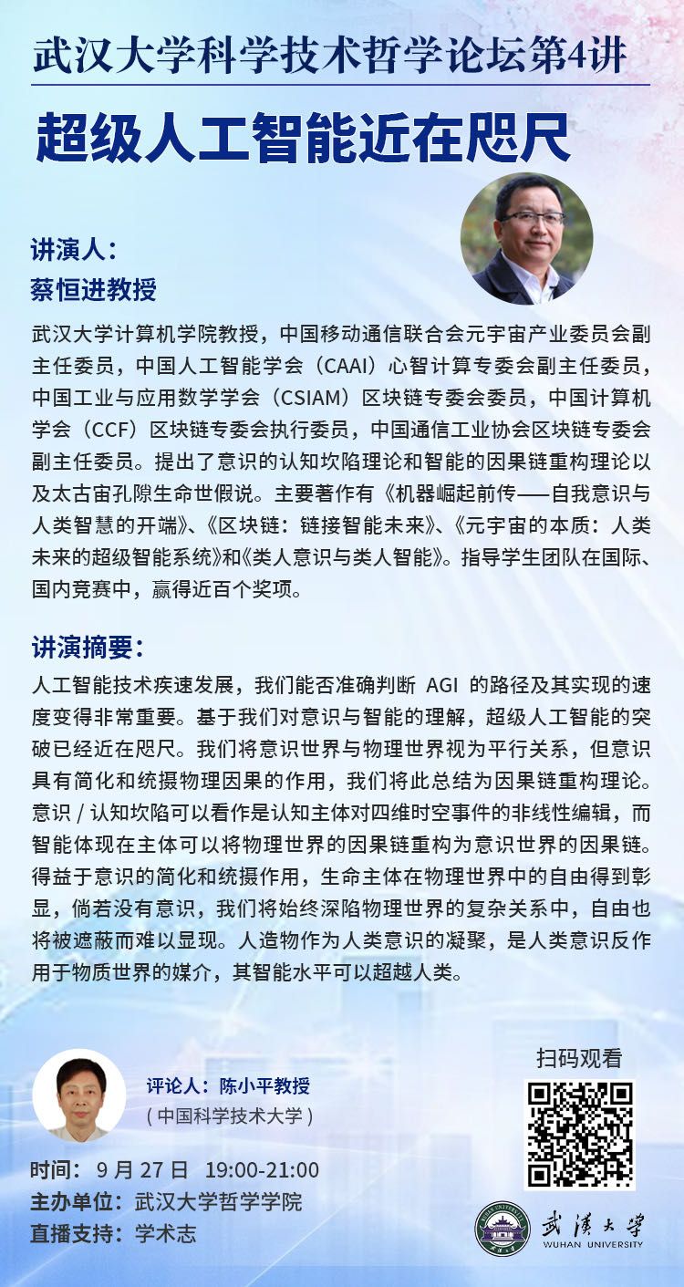 【9月27日】探花系列 科学技术哲学论坛第4讲:超级人工智能近在咫尺