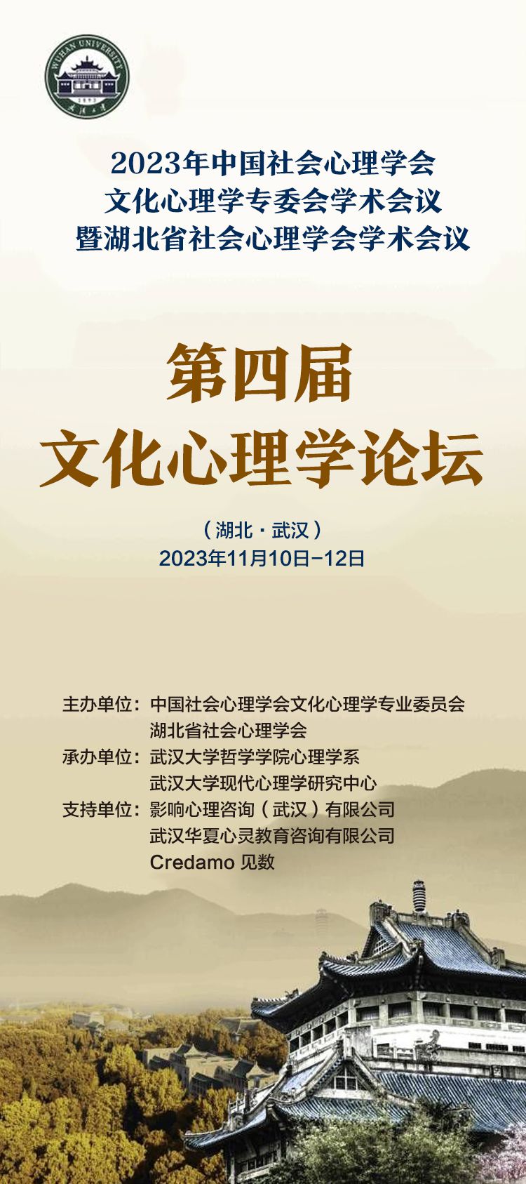 【11月10日—12日】第四届文化心理学论坛 ▏2023年中国社会心理学会文化心理学专委会学术会议暨湖北省社会心理学会学术会议