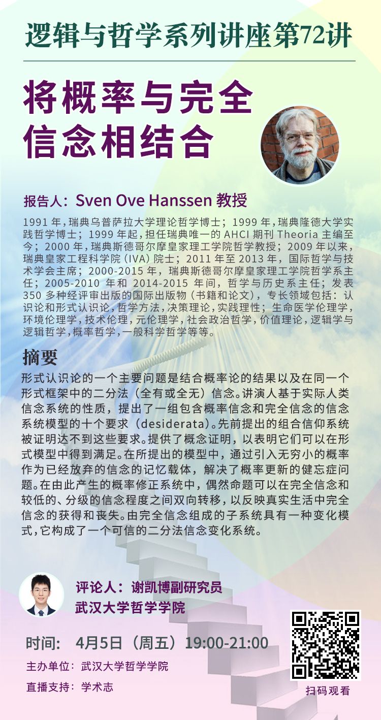 【4月5日】将概率与完全信念相结合 ——逻辑与哲学系列讲座第72讲