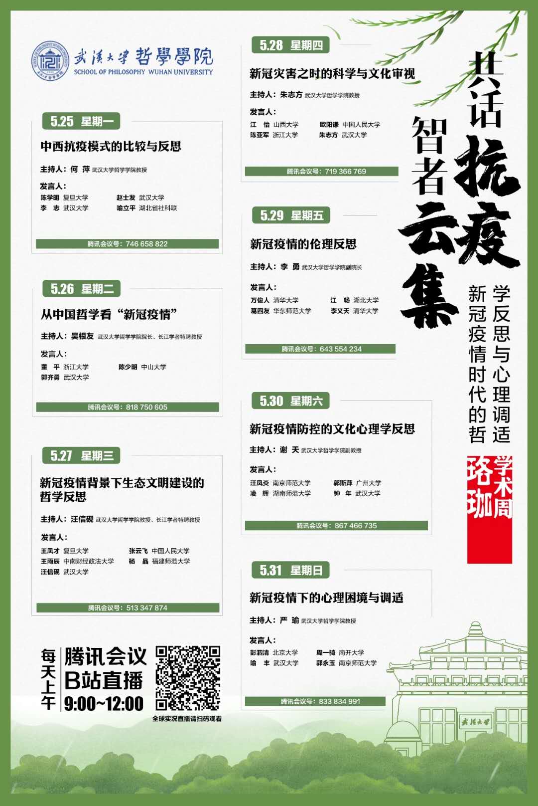 【5月25日——5月31日】珞珈学术周——新冠疫情时代的哲学反思与心理调适