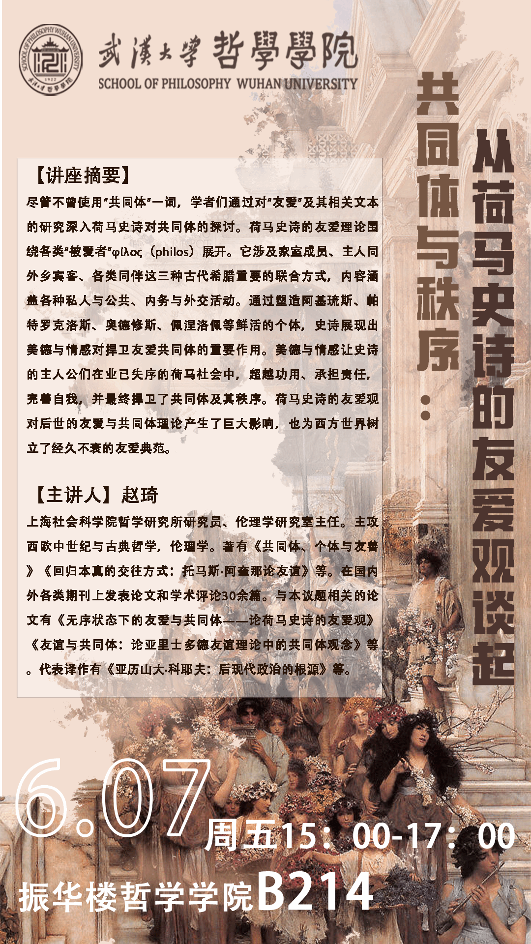 【6月7日】共同体与秩序:从荷马史诗的友爱观谈起