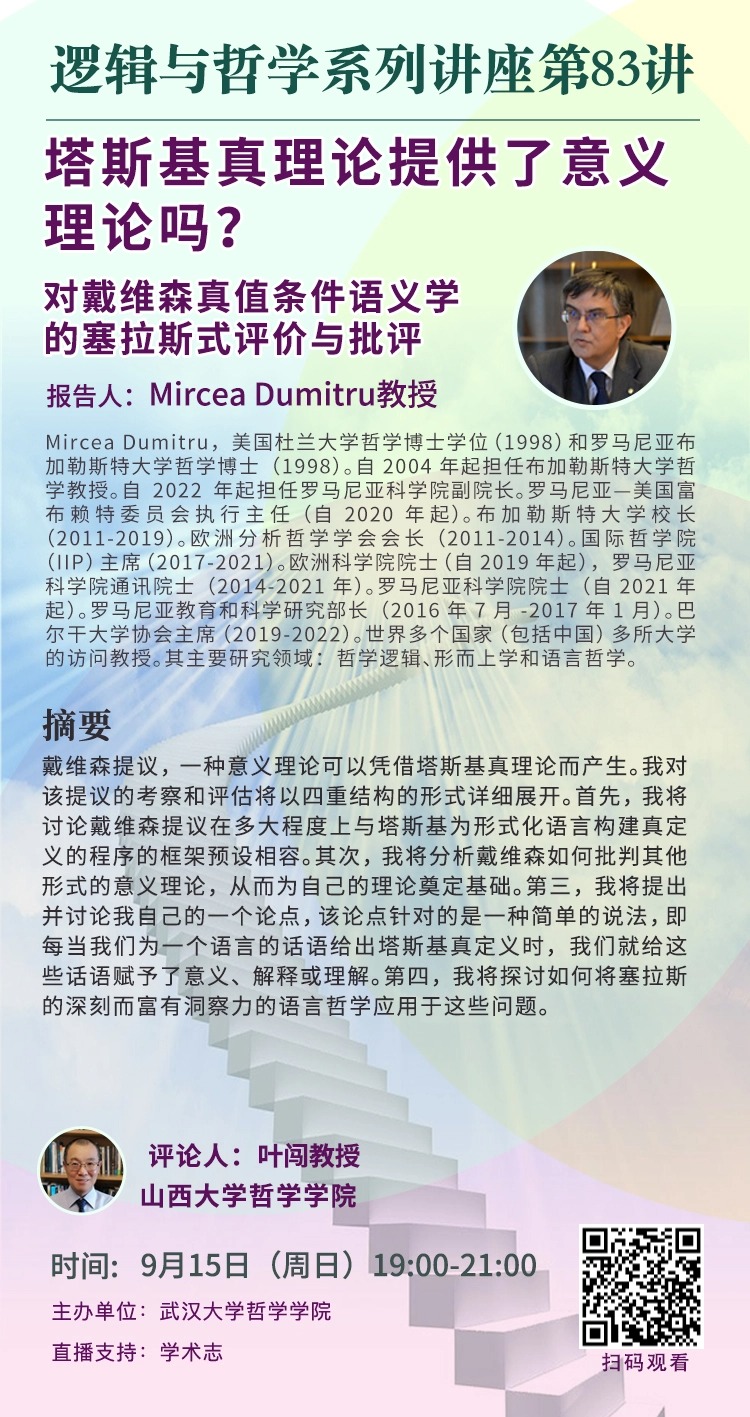 【9月15日】逻辑与哲学系列讲座第83讲|塔斯基真理论提供了意义理论吗?