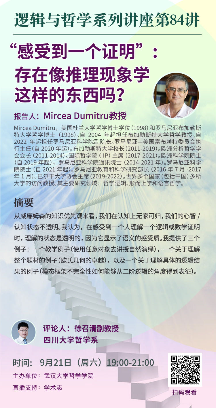 【9月21日】逻辑与哲学系列讲座第84讲|“感受到一个证明”:存在像推理现象学这样的东西吗?