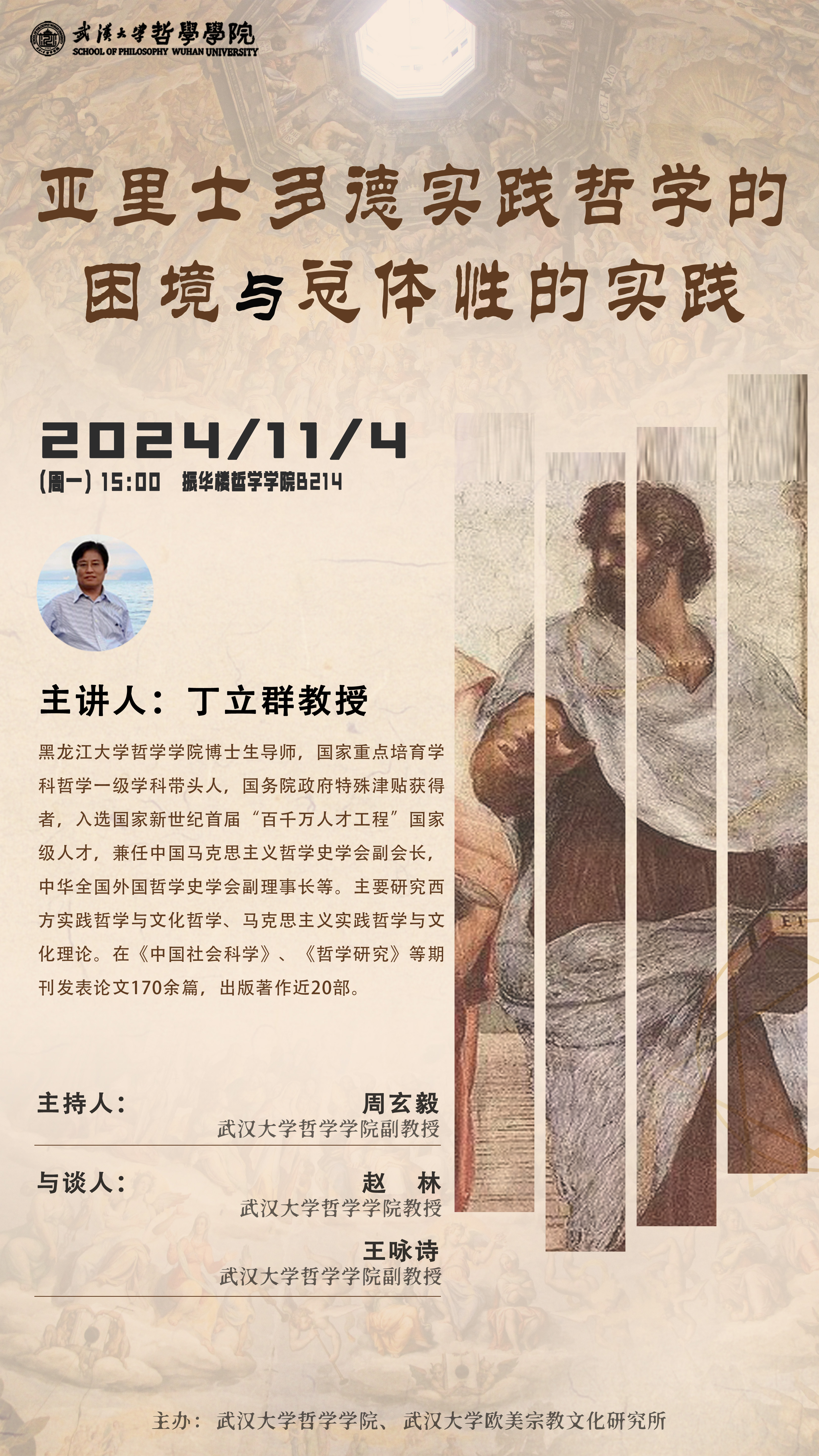 【11月4日】讲座预告 | 丁立群:亚里士多德实践哲学的困境与总体性的实践