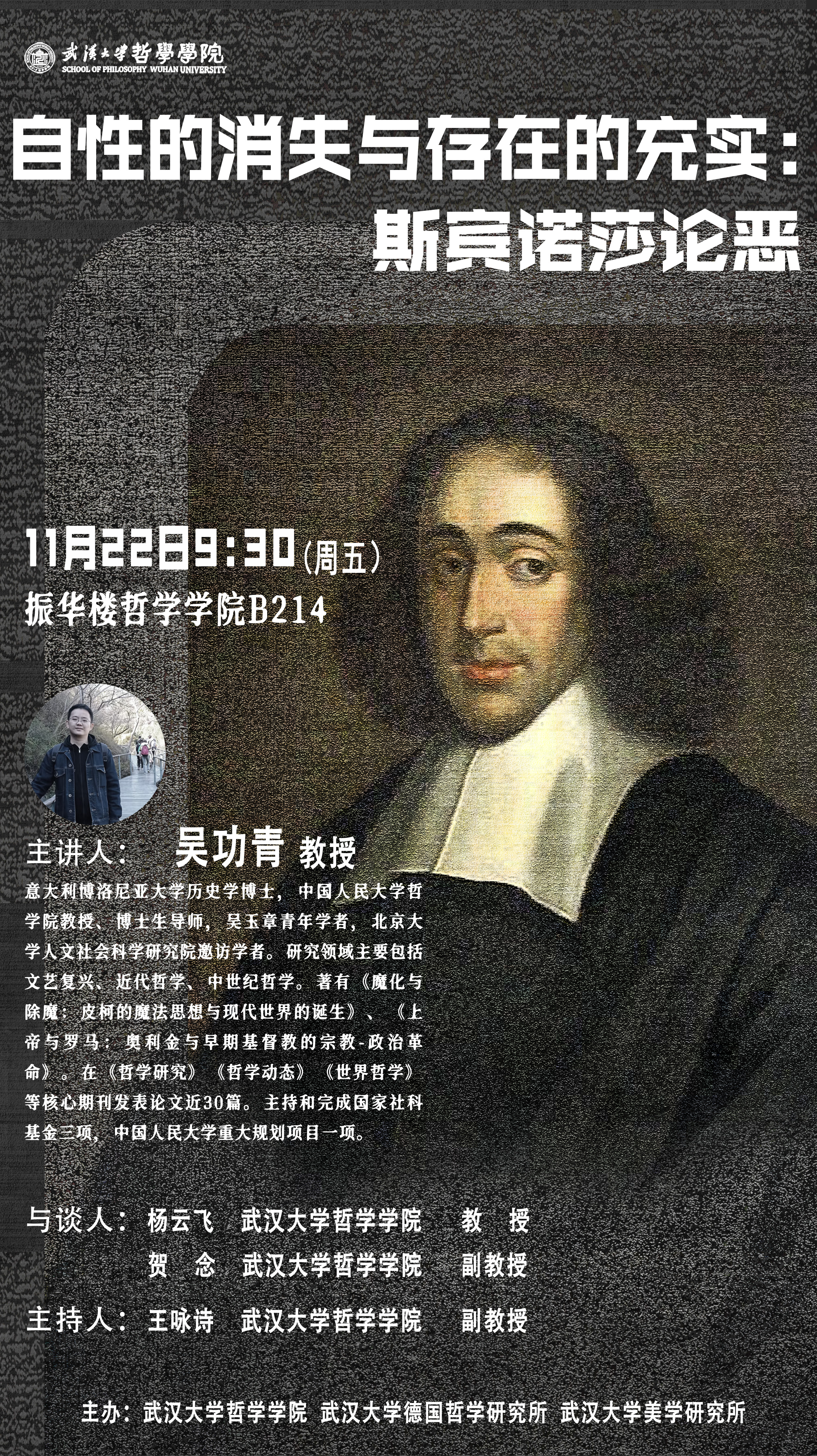 【11月22日】讲座预告 | 吴功青:自性的消失与存在的充实:斯宾诺莎论恶
