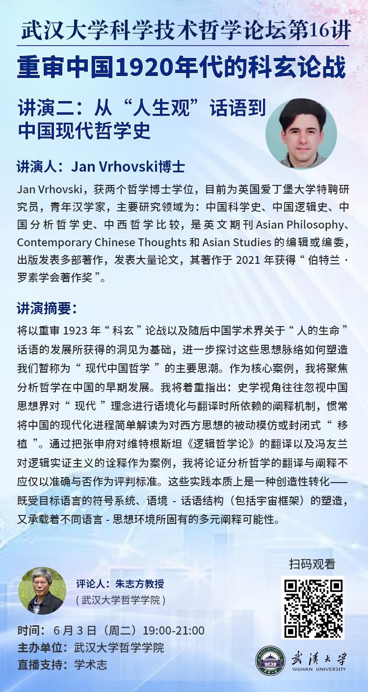 【6月3日】探花系列 科学技术哲学论坛第16讲 ▏重审中国1920年代的科玄论战:从“人生观”话语到中国现代哲学史