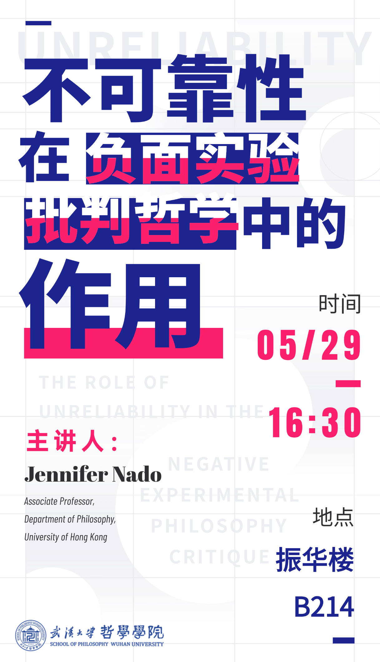 【5月29日】讲座预告 | Jennifer Nado : 不可靠性在负面实验批判哲学中的作用