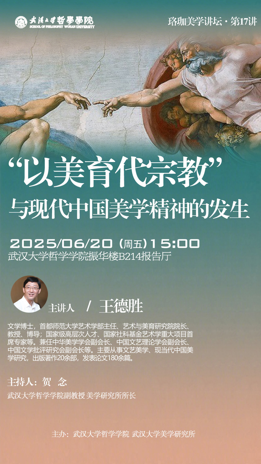【6月20日】珞珈美学讲坛第17讲预告 |王德胜:“以美育代宗教”与现代中国美学精神的发生