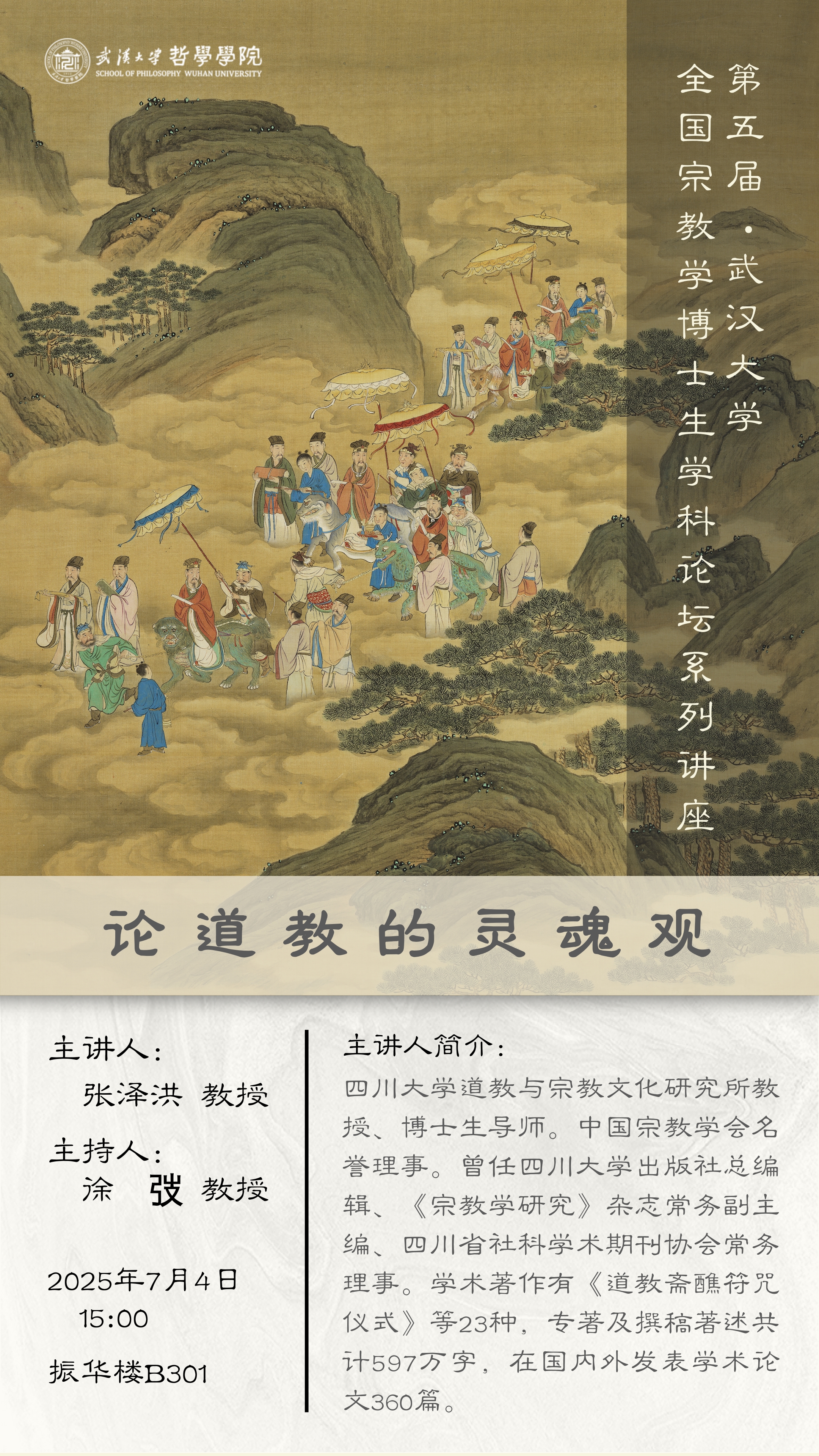 【7月4日】第五届 ● 探花系列 全国宗教学博士生学科论坛系列讲座 | 张泽洪:论道教的灵魂观