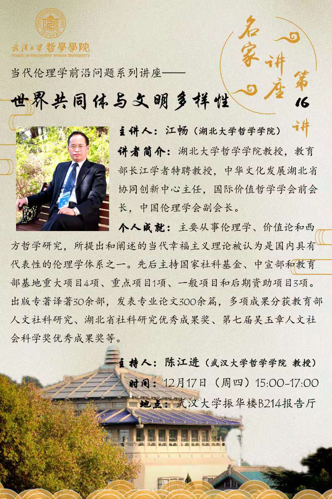 【12月17日】名家讲座第16讲:世界共同体与文明多样性