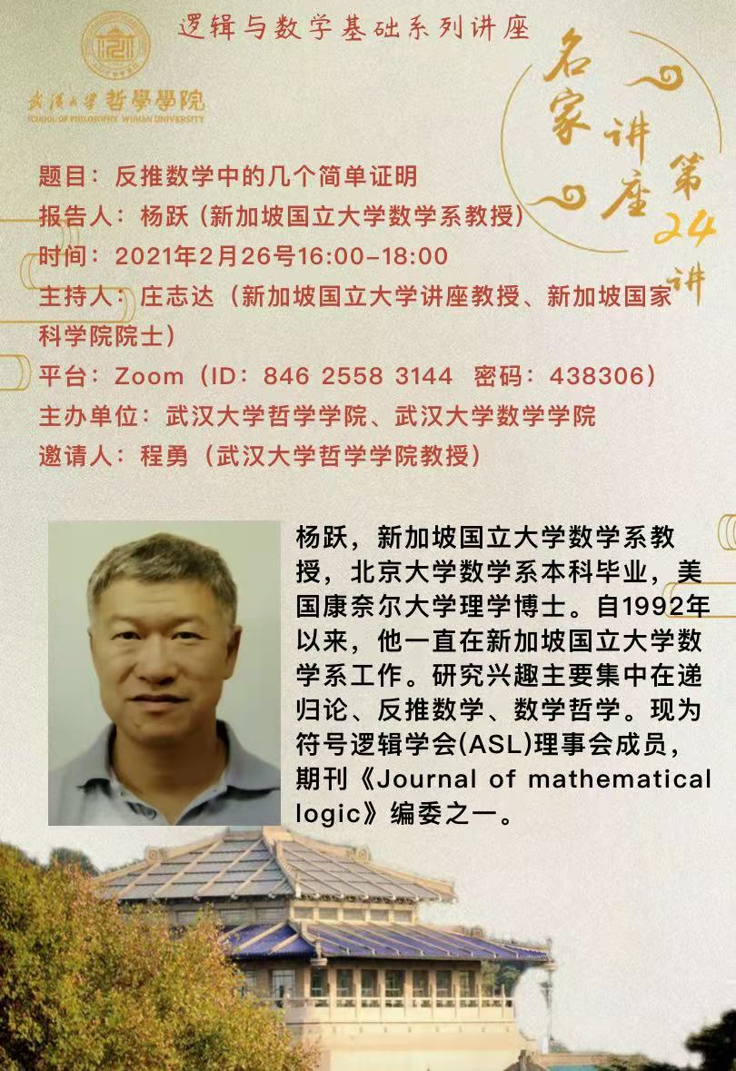 【2月26日】名家讲座第24讲:反推数学中的几个简单证明
